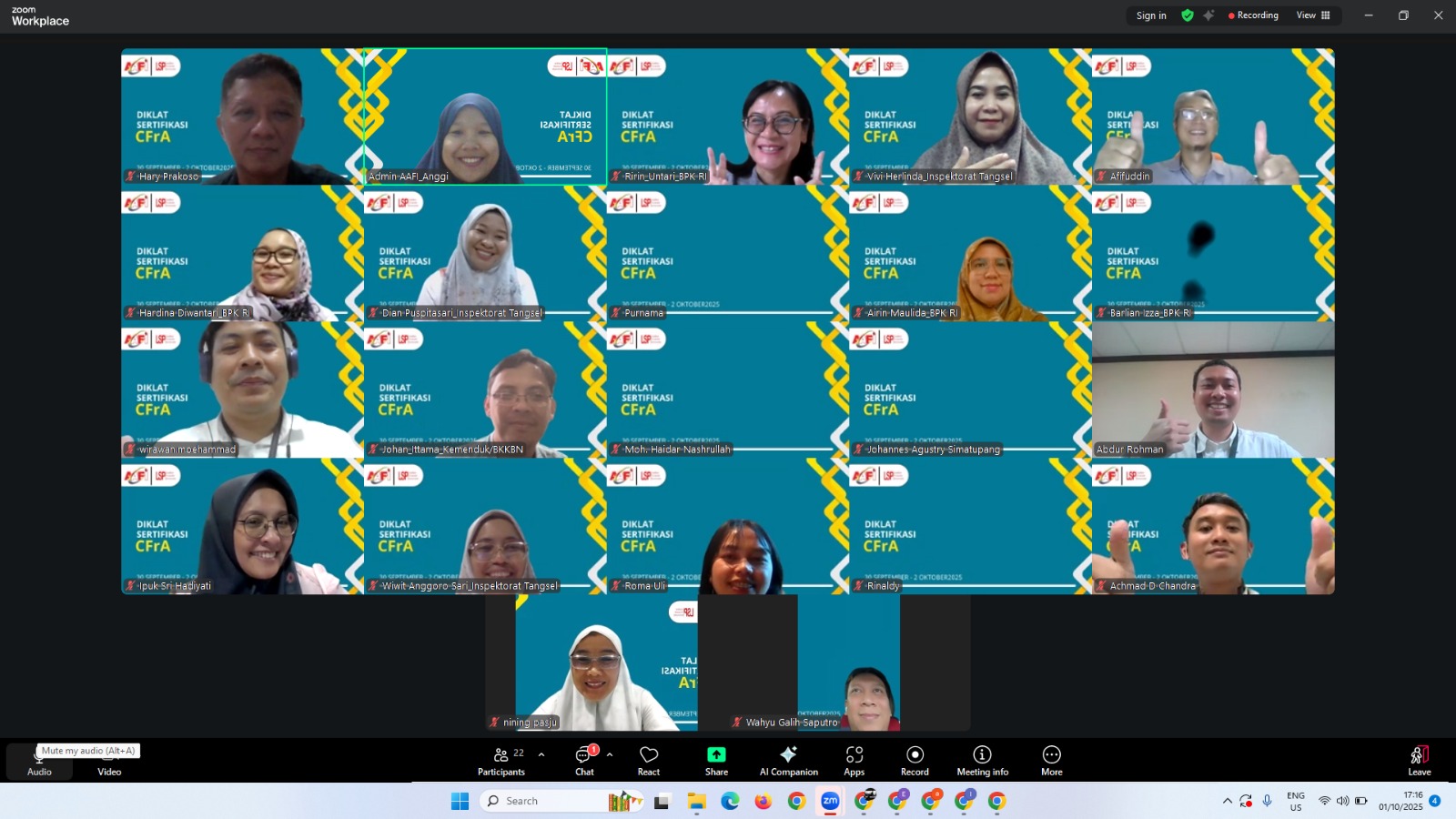 12 Nov 2025 AAFI SABURAI JUA Menyelenggarakan Pelatihan Sertifikasi Auditor Forensik Tingkat Dasar bagi Anggota Baru Admin Nasional Posting at 12 November 2025
